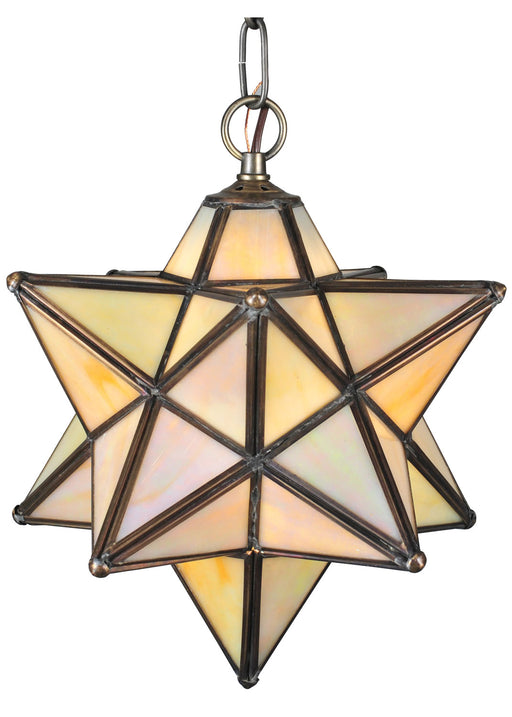 This timeless ceiling fixture is hand crafted of sparkling Beige Iridized art glass. Dating back to Moravia, hundreds of years ago, the star was us...