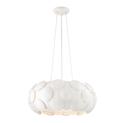 6-Light 20" Designer Pendant with Mini Semi-Dome Gloss White Discs Creating Oblong Shade with Frosted Diffuser.Details:Product Type: Metal ShadeFin...