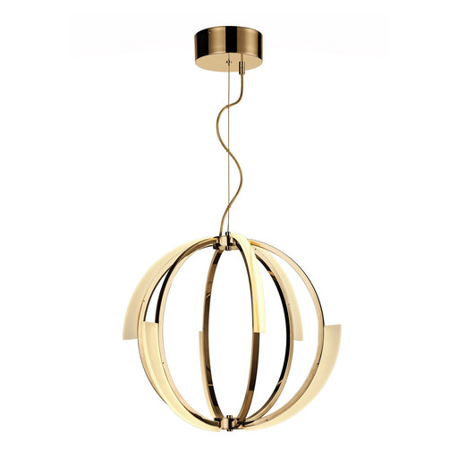 LED 22" Geometrical Sphere Styled Chandelier with Aged Brass Metal Finish and Frosted Acrylic Horn Shaped Diffusers.Details:Product Type: SphereFin...