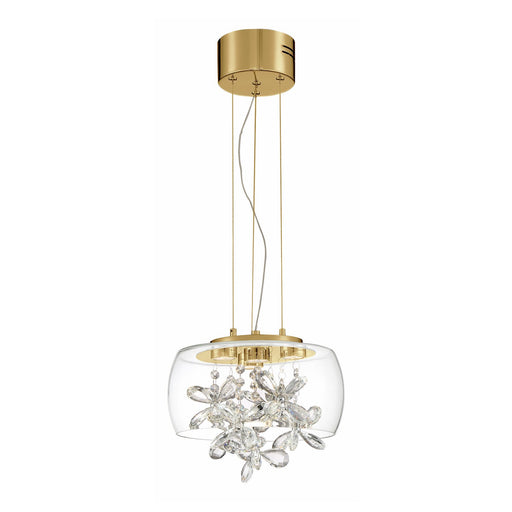 LED 11" Clear Glass Dome Shade with Clear Butterfly Crystal Stranded Mini Pendant with Aged Brass Metal Finish.Details:Product Type: Glass DownFini...