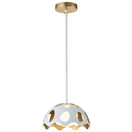 Pebbles 10" Mini Pendant in White finish with Gold interior. The unique cut outs in the design are accentuated by a frosted glass globe that provid...