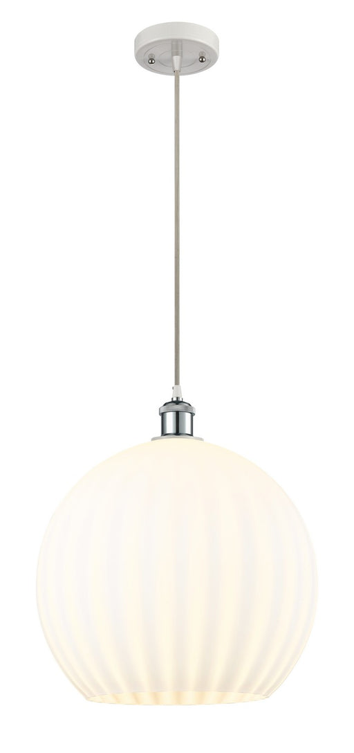 White Venetian - 1 Light - 14 inch - White Polished Chrome - White Venetian Shade - Cord Hung - PendantDetails:Product Type: SphereFinish: White Po...