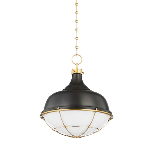 View full detailsHudson Valley MDS1402-AGB/OW One Light Pendant, Aged Brass/Off White