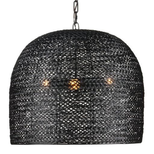 The Piero Medium Black Chandelier may appear to be woven from a natural plant material but it is made of iron in a satin black finish to make it an...