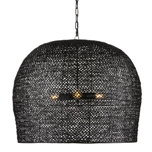 The Piero Black Large Chandelier may appear to be woven from a natural plant material but it is made of iron in a satin black finish to make it an ...