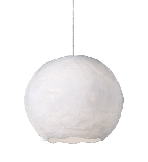 This spherical pendant is hung from a single power cord and offers a moonlight radiance to any indoor room. The hand-applied polymer gives each pie...