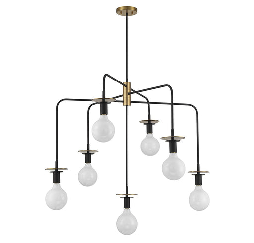 View full detailsLighting One E V6-L1-9606-6-143 Six Light Chandelier, Matte Black w/ Warm Brass