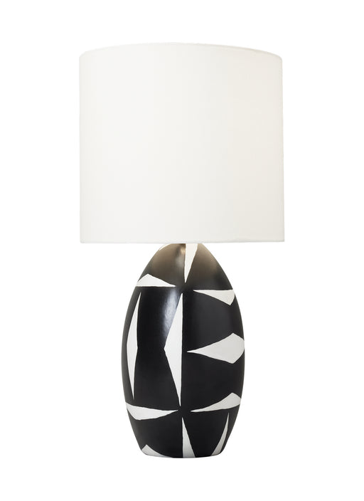 Visual Comfort Studio HT1041WLBL1 One Light Table Lamp, White Leather W Black Leather