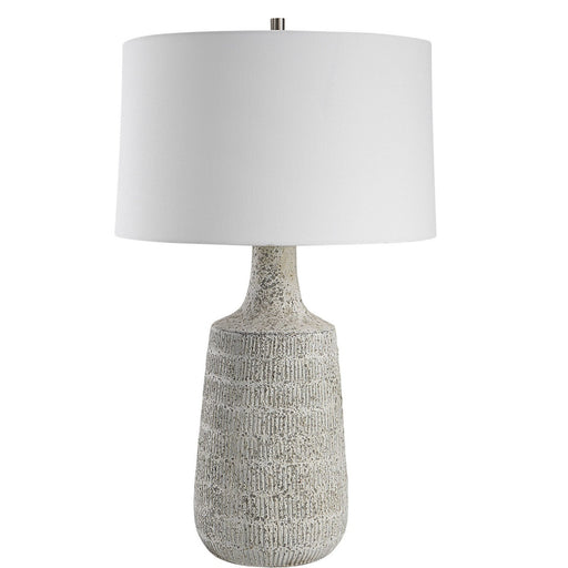 Drawing Inspiration From Antique Clay Pottery, This Table Lamp Is Handcrafted From Ceramic In A Mottled Gray And Off-white Matte Glaze With Subtle ...