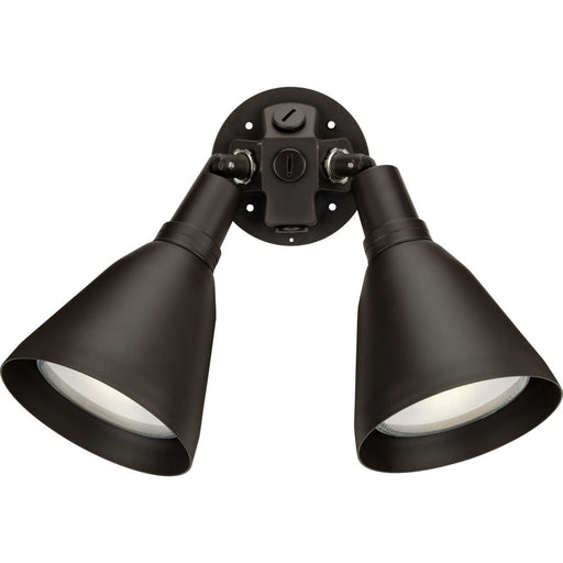 Outdoor adjustable two-headed swivel floodlight in a painted Antique Bronze finish and solid Aluminum construction.Details:Product Type: Spot Light...