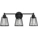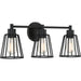 The Atticus is a vintage-inspired updated for today's modern bath. Tapered cage-like shades add an industrial touch, while the simple crossbar and deep earth black finish offers versatility. We recommend using vintage filament bulbs for maximum flair.