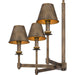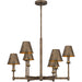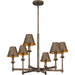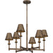 The Cross chandelier features a statuary bronze finish that illuminates handsome style. Metal shades add drama and warmth to the classic silhouette, making Cross a perfect choice in a study, living room, or dining room area. The slender candle sleeves come in white but are also provided in statuary bronze to match the beautiful finish.