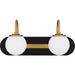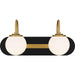 Matte black and brushed gold accents make a beautiful, modern pairing in Desmond. Opal etched glass globes complement the bold bath light design, delivering the perfect amount of illumination. Desmond is available in a variety of sizes, allowing you to easily customize to your desired vanity setting.