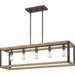 The open, airy design of the Finn collection easily complements many home décor styles. The rectangular silhouette is finished in Rustic Black and paired with a painted Natural Walnut finish to create a handsome farmhouse style fixture. The exposed bulbs allow for maximum light flow to illuminate any room.
