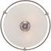This understated style provides a stylish soft modern look for most any room. The etched shade is painted white inside diffusing the light evenly and illuminating your home with a soothing glow. It is held in place by softly curved arms and is available in three finishes: Antique Nickel Polished Chrome Palladian Bronze and Weathered Brass.