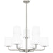 Available in a variety of sizes, Gallagher chandeliers offer the perfect complement to any space. Choose from a classic brushed nickel finish with opal etched glass shades- or go the more modern route with a matte black finish and white fabric shades. Whichever you choose, Gallagher is sure to impress with its transitional styling.