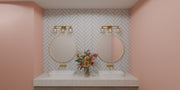 Add instant mystique and luxury above a bathroom vanity with the Gibson bath light. Clear beveled crystal shades create a dazzling play of shadow and light, paired with your choice of a matte black, polished chrome, or aged brass finish. Choose from a variety of size options and configure this glamorous fixture with shades facing up or down depending on your lighting needs.