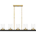 Modern glam from above. The Greeley chandelier features sculptural gold framework, clear glass candle cups and a bold, matte black ring base. This design is also available as an island light, illuminating high style in the kitchen.