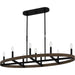 Embrace modern farmhouse design with the Hendrix linear chandelier. Tall, slender candle sleeves rise from an oval-shaped wood accent piece for a touch of industrial whimsy. A matte black finish completes the unique look, making Hendrix the perfect choice over any kitchen island, bar area, or table.