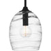 Clear optic glass shades feature a rippling, wave-like pattern that evokes serene movement in the Lucy collection. Clean lines and a matte black finish complete the look, making Lucy a perfect complement to transitional or coastal inspired settings. Lucy is available as a flush mount, pendant light, chandelier, and multiple sizes of bath light.