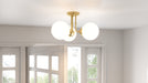 Customize your lighting needs in a flash. In a coveted sphere-and-stem style, Landry's bent arms easily convert from semi-flush to pendant length so you can choose the look that best suits your space. With Art Deco savoir-faire, this adaptable design features opal-etched glass shades and a satin brass finish. Landry is a must-have for entryways, kitchens, bathrooms, dressing rooms, or practically anywhere else at home.