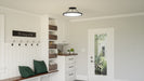 Outskirts is as stylish as it is functional. The contemporary semi-flush mount light is available in a variety of sizes, and in either a brushed nickel or matte black finish. An integrated LED light source shines through a round white acrylic shade, giving off the perfect amount of light for any indoor setting.