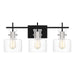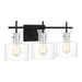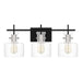 A matte black finish includes a hint of shine, courtesy of brushed aluminum accents, in the Pensbury bath light. With clear glass shades to maximize radiance, the light comes in either three or four bulbs. The black-and-silver colorway adds a refined touch to modern bath spaces.