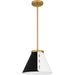 Trette semi-flush mount or pendant lights feature a fun, color block design that pairs well in any modern or contemporary setting. The black and white metal shade is complemented by a brushed weathered brass finish, adding a touch of luster to the sleek silhouette. Hung individually or in a grouping, Trette pendants make a bold statement over any kitchen island or bar area.