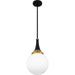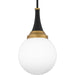 Black and gold create a bold and modern pairing in the Arlo pendant light. The clear opal glass globe is accentuated by a matte black finish and lustrous brass accents at the top. Hang Arlo pendants alone or in a grouping over a kitchen island, bar area, or table for optimal lighting.