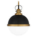 Sullivan's spherical shape packs aesthetic punch. This handsome pendant features an opal-etched glass shade paired with a matte black finish and brass trim. Try a trio of these lights in the kitchen, or use one on its own in the foyer.