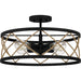 Cedar Park embraces elements of both industrial and coastal design. Part of the Quoizel Naturals line, this semi-flush mount light features an elegant lattice pattern made of rope instead of the typical metal lines. A matte black finish completes the look, making Cedar Park a perfect complement to a variety of indoor settings.