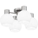 Complement any room or home décor with the transitional look of Donahue. This minimalist semi-flush mount comes in your choice of brushed nickel or matte black, two timeless finishes. The rounded opal glass shades complete the look, creating a soft glow that is perfect for any hallway, bedroom, or foyer.