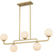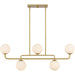 With a brushed gold finish and glass globes, the Regis island light makes a striking statement. The linear, geometric frame features opal etched swirled glass globes, facing both upwards and downwards for an intriguing lighting effect. Hang the Regis chandelier over any modern kitchen island, bar area, or dining room table for instant style.