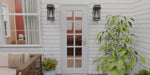 Create a lasting impression with Strader outdoor lanterns. A matte black frame and distressed wood accents pair with clear seedy glass panels for a farmhouse-ready look. Available as a hanging lantern or in various sizes of wall lantern, Strader is an easy way to add stylish illumination to a front porch or landscape.
