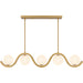 True to its name, Spherical embodies modern art with its curved lines and unique glass orbs. The sculptural island light is finished in a lustrous aged brass, but the white cloud glass spheres make the real style statement. Hang the Spherical linear chandelier over any kitchen island or bar area for instant, eye-catching illumination.