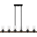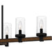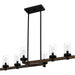 With a linear framework and weathered styling, Tuthill embodies modern farmhouse style. Clear water glass shades pair perfectly with the slightly distressed wood accents. Finished in matte black, the Tuthill chandelier makes a rustic statement over any kitchen island, bar area, or dining room table.