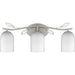 Add a pretty, feminine touch to any bathroom or powder room vanity with Ulysees. The sleek silhouette is adorned with delicate white leaves, adding a modern elegance to the classic bath light design. Choose from a variety of sizing options, available in a timeless brushed nickel finish.