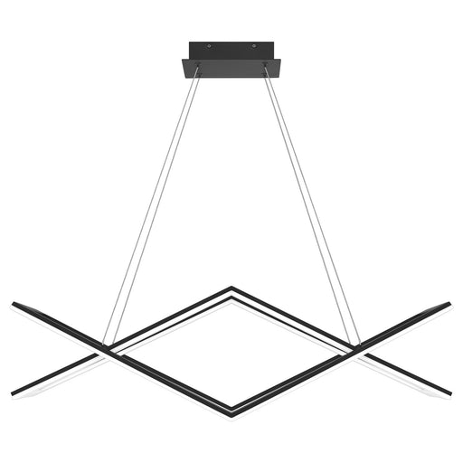 Curvilinear shapes twist and turn in the Ovard pendant. This striking style includes an integrated light source paired with a matte black finish. I...