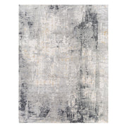 This Machine Woven Rug Features An Abstract Design In Tones Of Light Gray, Off-white, Charcoal And Subtle Tones Of Mustard, Constructed From A Mix Of Lustrous Viscose And Polyester.