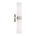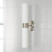 Sleek and classic, the Theo Dual Sconce for HomePlace punctuates any powder room. The Brushed Nickel finish adds a classic touch, while the elongated Soft White glass shades create a sophisticated glow.