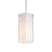 Single lamp pendant with white cylinder glass and opal inner cylinder glass with brushed nickel details.