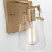 Add a bright burst of light where you need it most with the stylish Drew & Jonathan Crofton Small Sconce, featuring a sleek rectangular metal backplate and clear glass shade. Made to coordinate across a broader range of bath hardware and design styles, the Crofton is available in four popular finishes, Brushed Steel, Chrome, Midnight Black, and Satin Brass. This light looks great on its own or installed above a bathroom vanity, and the glass shade makes it ideal for filament bulbs. This fixture may be mounted in the up or down position, and is cETL listed for damp locations, making it the perfect lighting solution for any space.