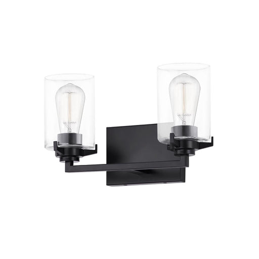 Details:Product Type: Two LightsFinish: Matte BlackShade: Clear GlassMeasurements:Width / Dia: 14.25"Height: 8.25"Extension: 6.00"Canopy: 6.75" W x...