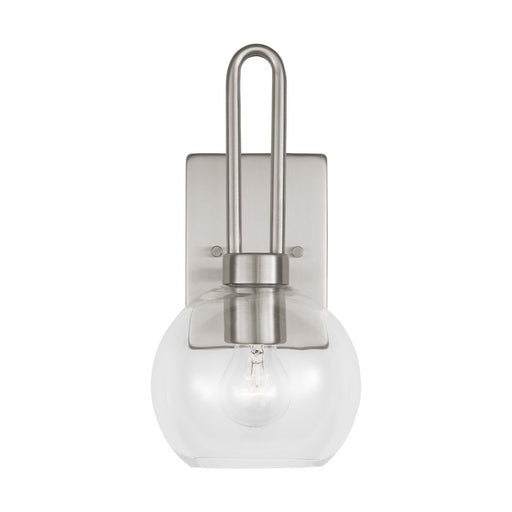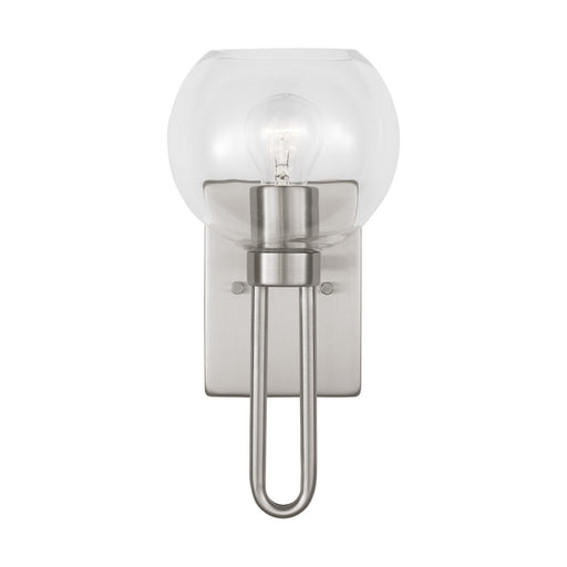 The Codyn one light wall sconce in brushed nickel silver is a contemporary take on a classic mid-century design. Clear glass shades with open-ended...