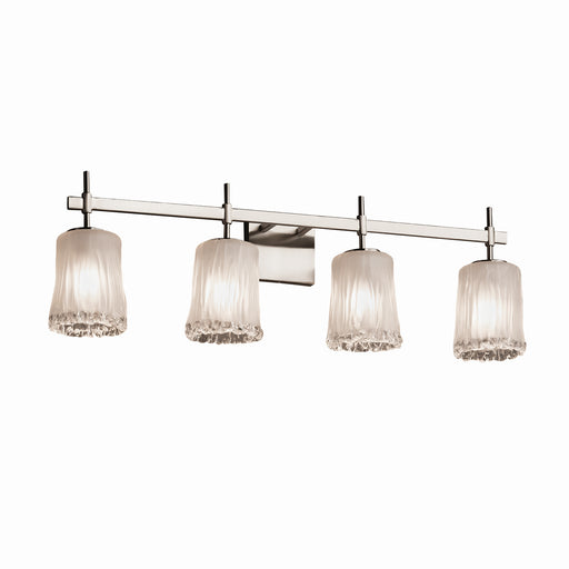 View full detailsJustice Designs GLA-8414-16-WTFR-NCKL Four Light Bath Bar, Brushed Nickel
