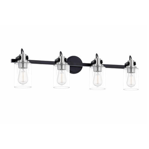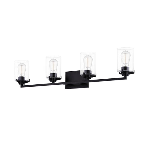 Details:Product Type: Four LightsFinish: Matte BlackShade: Clear GlassMeasurements:Width / Dia: 34.75"Height: 8.25"Extension: 6.00"Canopy: 6.75" W ...