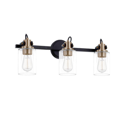 View full detailsJustice Designs FSN-8193-CLER-MBBR Three Light Bath Bar, Matte Black w/ Brass