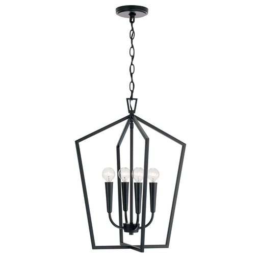 The sharp lines and artistic arches of the Peyton 4-Light Foyer give a modern update to old world influence. The muted tone of the Matte Black fini...