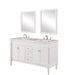 This traditionally styled, yet fashionably designed vanity can add distinction and grace to your home or office bathroom. Beautifully combining a lustrous natural white marble countertop with 2 large rectangular white porcelain under mount sink, and a hand painted antique white cabinet with 3 full extension drawers and 4 doors with shelf inside, brushed steel door pulls, standing on turned, tapering legs. You'll enjoy its charming allure for many years to come. Measurements: W60" x D21" x H35"