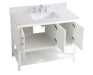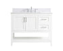 The nonchalant attitude of this 42" traditional white finish vanity will have you wanting more. The slender brushed nickel handle bars open the 3 cabinet doors to reveal ample storage space to put away and store bathroom essentials, and the open space below allows for you to place clean towels on the rack. Topped with a Calacatta engineered marble countertop, you and your guests will enjoy this easy going vanity. Comes with a matching backsplash to complete the look and protects your wall.
